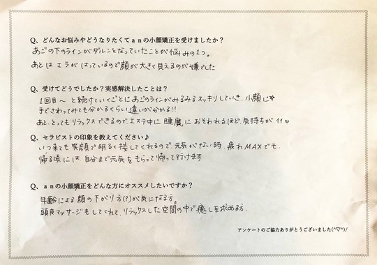 Q.どんなお悩みやどうなりたくてanの小顔矯正をうけましたか?